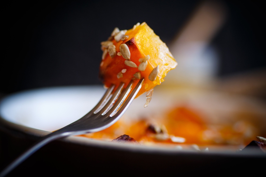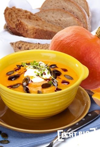 Kürbisgnocchi mit geschmelzten Zwiebeln auf kalter Tomatengazpacho